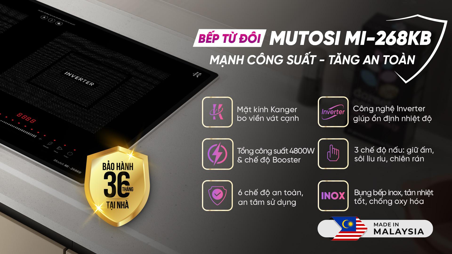BẾP TỪ ĐÔI MUTOSI MI-268KB (MADE IN MALAYSIA)