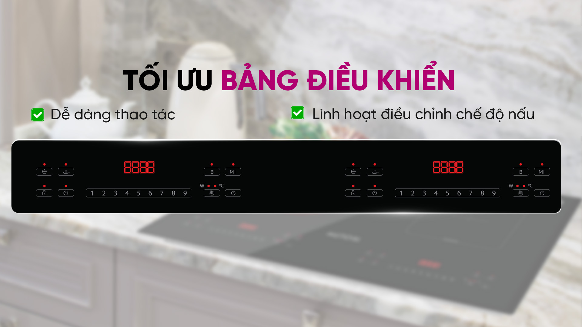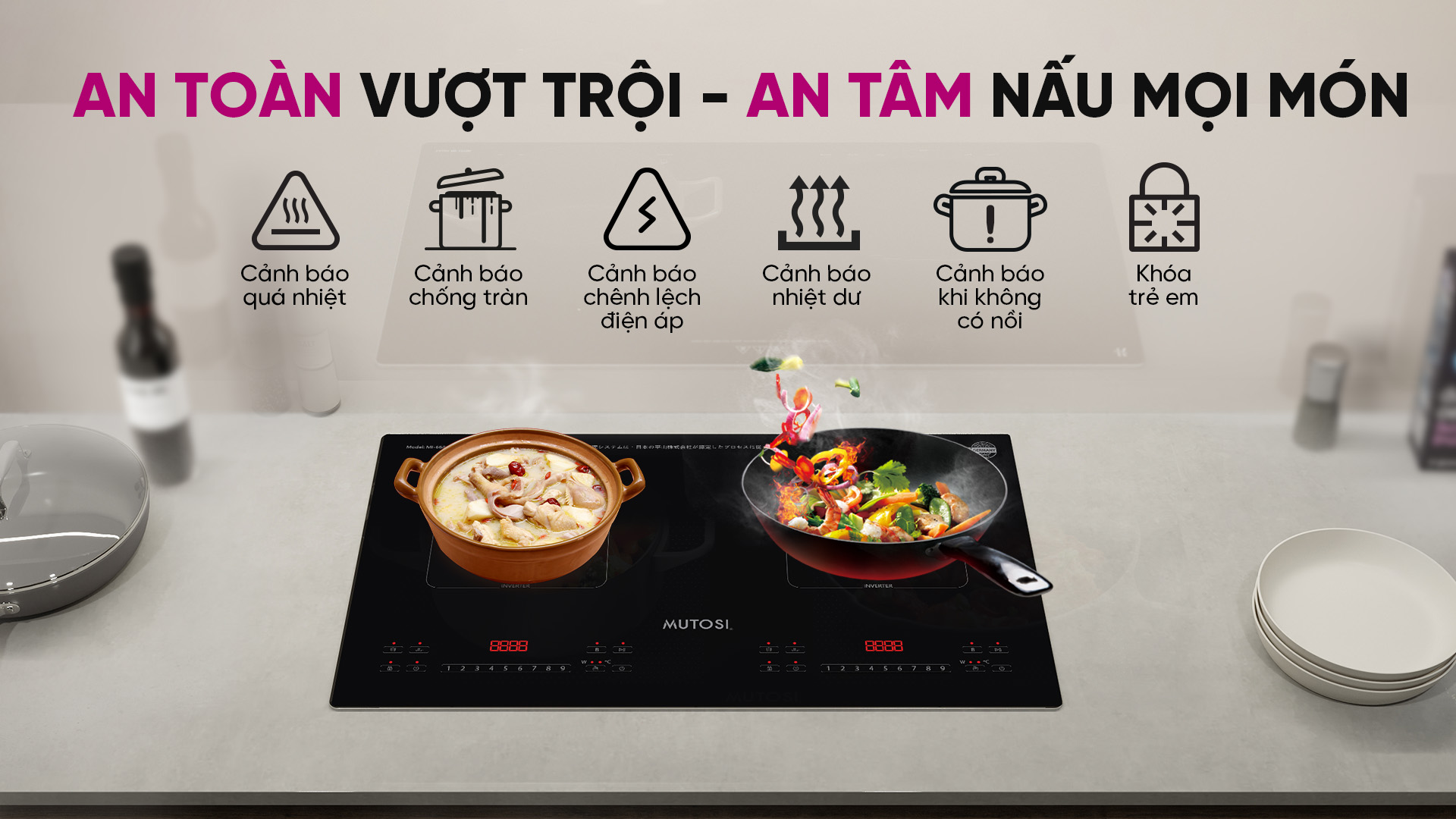 Các tính năng như cảnh báo quá nhiệt, cảnh báo chống tràn, cảnh báo chênh lệch điện áp, cảnh báo nhiệt dư, cảnh báo khi không có nồi, và khóa trẻ em được hiển thị rõ ràng thông qua mã lỗi trên bảng điều khiển LED của bếp mang đến sự an tâm tuyệt đối cho người dùng trong mỗi lần nấu.