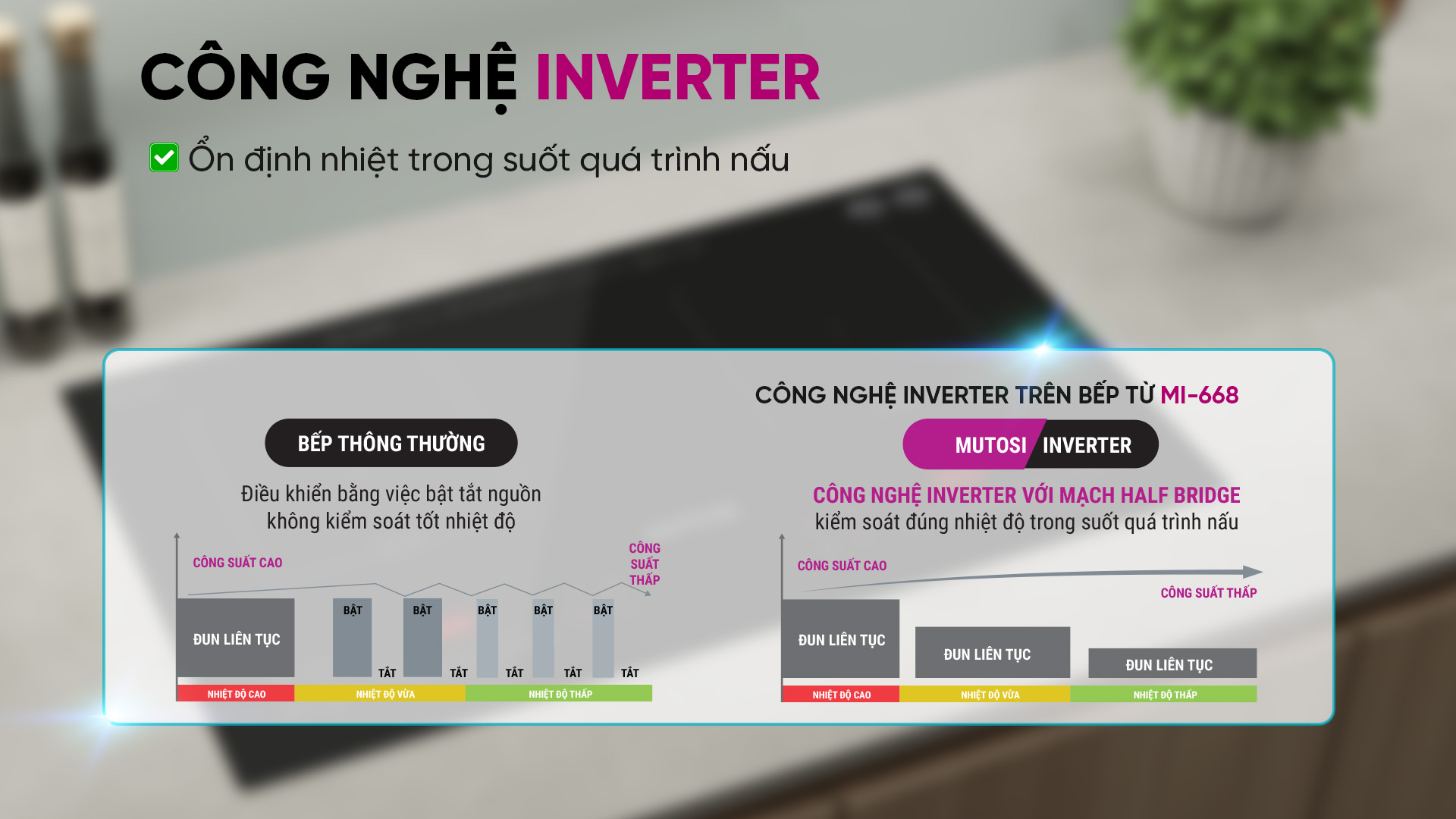 Công nghệ Inverter với cấu trúc mạch Half-bridge ổn định nhiệt trong suốt quá trình nấu