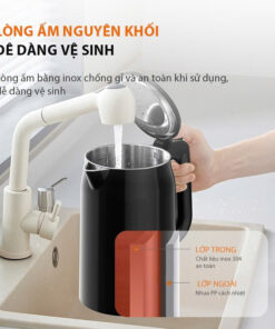 Lớp vỏ nhựa ngoài chống nóng hiệu quả, an toàn khi chạm vào. Lớp inox trong giữ nhiệt tốt, hạn chế thất thoát nhiệt.