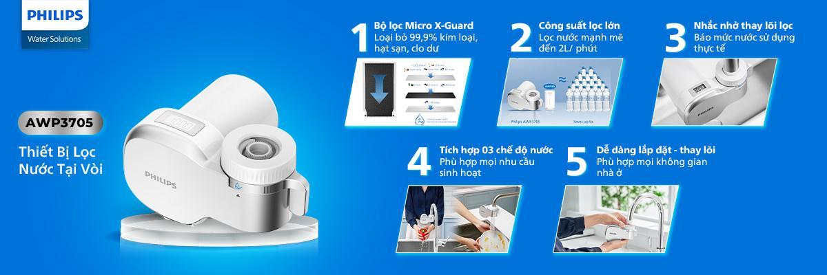 Tận hưởng sự ưu việt của nguồn nước sạch, trong lành ngay từ vòi của bạn với thiết bị lọc nước Philips AWP3705 tối ưu hóa thời gian sử dụng nước cho việc vệ sinh cá nhân, rửa thức ăn hoa quả hay nấu nước, mà vẫn đảm bảo tốt cho việc chăm sóc da mặt. ( Không khuyến khích sử dụng nước uống trực tiếp tại vòi )