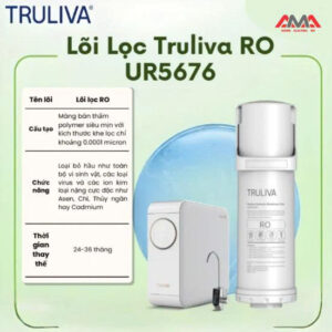 - Lõi RO (Màng lọc chính): Có tuổi thọ cao hơn, dao động từ 24 – 36 tháng (2 – 3 năm). Nhờ tính năng tự động sục rửa màng lọc thông minh của máy lọc nước Truliva UR5676, màng RO luôn được giữ sạch sẽ, giúp kéo dài thời gian sử dụng đáng kể so với các máy thông thường.
