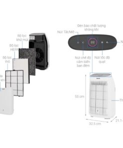 – Trang bị cảm biến không khí thông minh phát hiện ô nhiễm PM2.5 và tăng tốc độ lọc để xứ lý lượng không khí ô nhiễm nhanh nhất. Máy cũng có hệ thống cảnh báo khi nào cần thay bộ lọc mới. Trên bảng điều khiển có thiết kế đèn màu báo chất lượng không khí từ Xanh dương (Chất lượng không khí tốt) đến Màu đỏ (Chất lượng không khí xấu).
