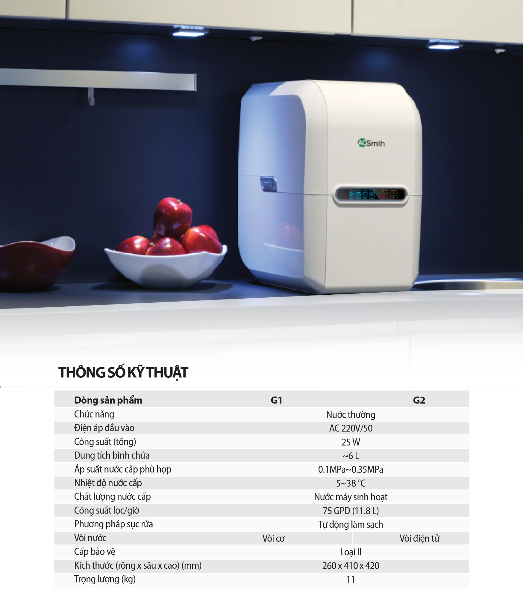 | Chất lượng nước cấp | Nước máy sinh hoạt |
