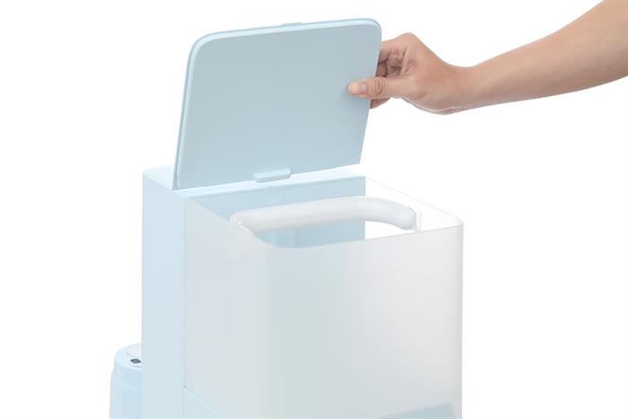 – Thiết kế để bàn nhỏ gọn, màu xanh dương nổi bật, phù hợp đặt tại bếp, phòng khách hay văn phòng làm việc. Người dùng chỉ cần cắm điện là sử dụng, không cần lắp đặt hệ thống cấp – thoát nước phức tạp.
