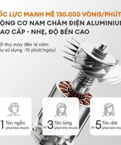 Điểm nhấn làm nên sự khác biệt của Gaabor HD-M01B chính là động cơ nam châm điện Aluminium cao cấp. Với tốc lực mạnh mẽ lên đến 130.000 vòng/phút, chiếc máy này mang lại luồng gió cực nhanh, lên đến 64 m/s, giúp sấy khô tóc chỉ trong tích tắc mà vẫn đảm bảo độ bền vượt trội, với tuổi thọ sử dụng lên đến 16 năm (nếu dùng 10 phút mỗi ngày).