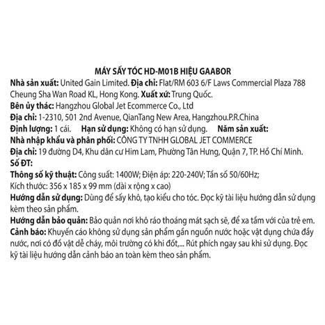 Tóm lại, máy sấy tóc Gaabor HD-M01B là lựa chọn tuyệt vời cho những ai tìm kiếm một chiếc máy sấy tóc mạnh mẽ, tiện lợi và có khả năng chăm sóc tóc chuyên sâu. Với công suất ấn tượng, công nghệ ion bảo vệ tóc và thiết kế thông minh, sản phẩm này chắc chắn sẽ làm hài lòng những tín đồ yêu thích vẻ đẹp hoàn hảo cho mái tóc.