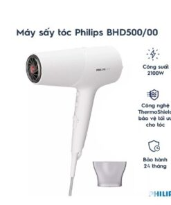 THÔNG TIN CHI TIẾT MÁY SẤY TÓC BHD500/00: Công nghệ ThermoShield giúp bảo vệ tóc không bị quá nóng, bằng cách chủ động kiểm soát nhiệt độ không khí của máy sấy ở mức tối ưu.