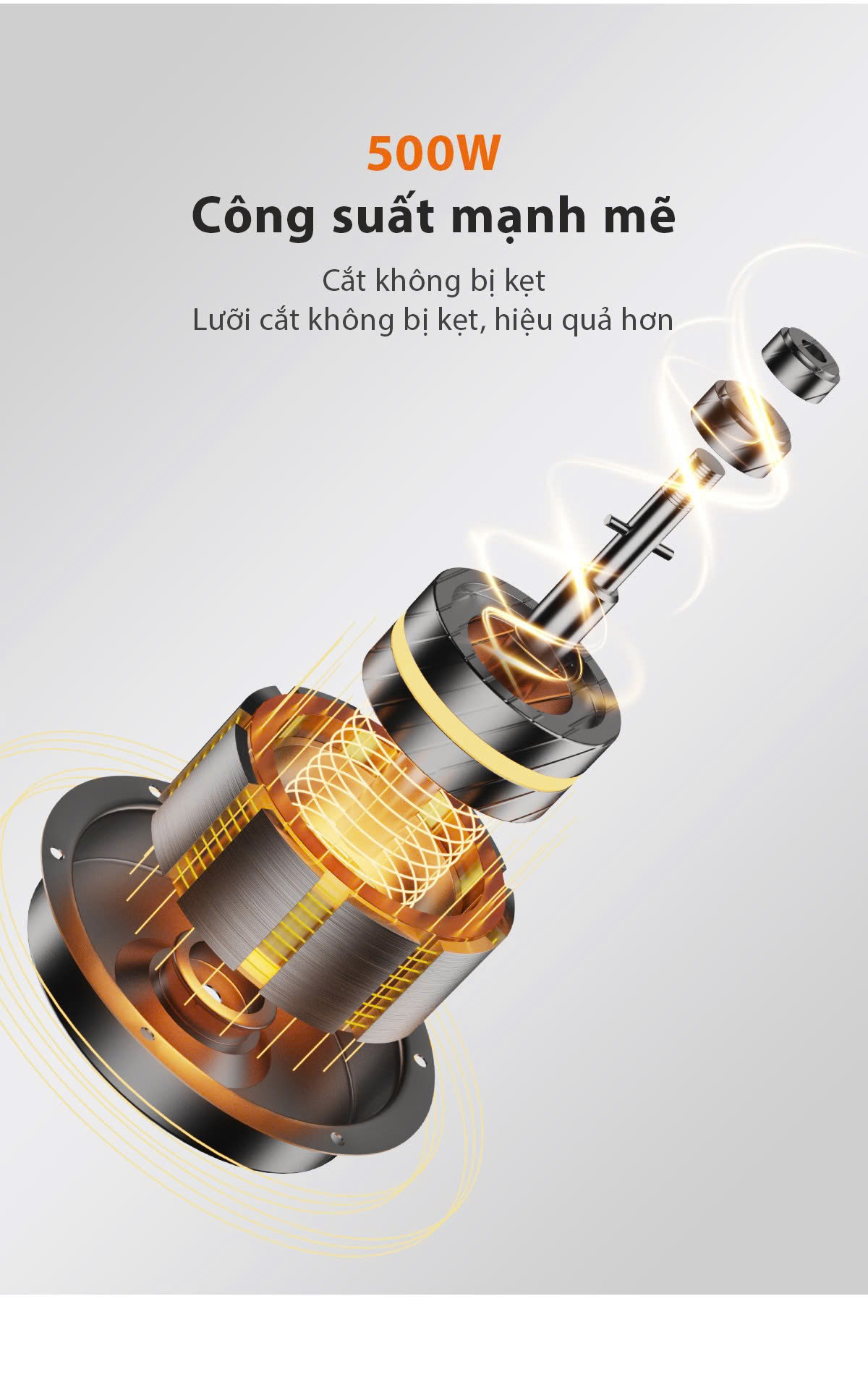 Lưỡi dao inox sắc bén cùng động cơ 500W mạnh mẽ