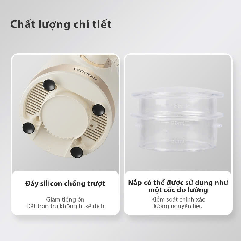 Gaabor JM-16M01A được trang bị nhiều tính năng an toàn hiện đại, mang lại sự yên tâm cho người dùng. Chân đế chống trượt giúp máy đứng vững chắc trên mọi bề mặt, hạn chế rung lắc trong quá trình vận hành. Khóa an toàn đảm bảo máy chỉ hoạt động khi cối được lắp đúng khớp. Tính năng tự ngắt khi quá tải và hệ thống tản nhiệt bảo vệ động cơ giúp kéo dài tuổi thọ sản phẩm, tránh những sự cố không đáng có. Đây quả thực là một chiếc máy xay sinh tố đa năng cực kỳ tiện lợi và an toàn.