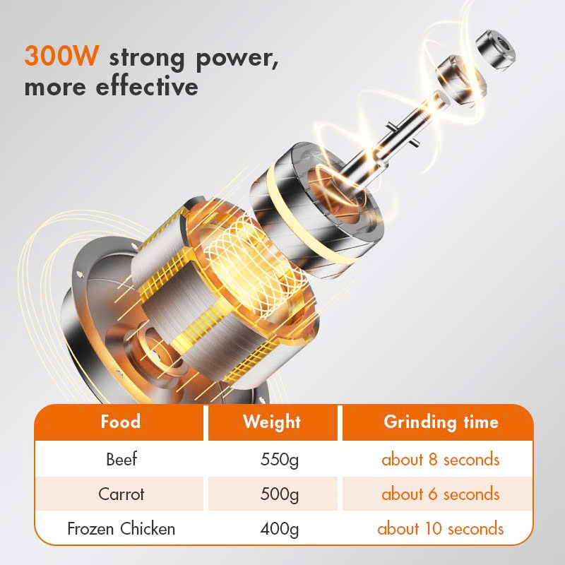 Bên cạnh công dụng chính là xay thịt, chiếc máy xay thịt đa năng này còn có thể xay hạt, xay bột, xay các loại thực phẩm và gia vị khô lẫn ướt, đáp ứng mọi nhu cầu chế biến món ăn phong phú cho gia đình bạn. Từ chả giò, nem nướng đến các món súp hay sốt, tất cả đều có thể được chuẩn bị nhanh chóng.