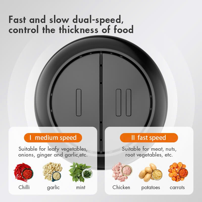 Máy trang bị 2 mức tốc độ xay (nhanh/chậm), cho phép bạn linh hoạt điều chỉnh tùy theo loại thực phẩm và độ mịn mong muốn. Nút chỉnh tốc độ dạng nhấn trực quan, dễ sử dụng, giúp mọi thành viên trong gia đình đều có thể thao tác một cách đơn giản và an toàn.
