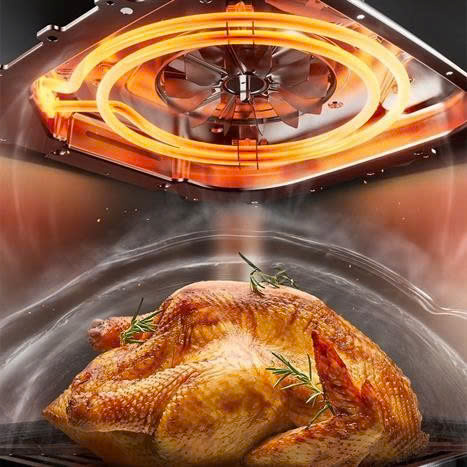 - Quạt đối lưu đảm bảo thức ăn chín đều, không cần lật, giữ nguyên hương vị thơm ngon.