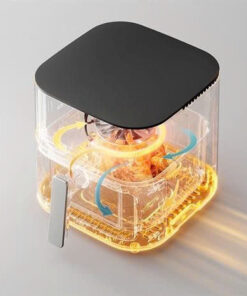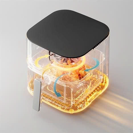 Mặt trước nồi chiên không dầu được trang bị kính cường lực trong suốt, kết hợp với đèn chiếu sáng bên trong, cho phép bạn dễ dàng quan sát quá trình chiên, nướng mà không cần mở nắp, tránh thất thoát nhiệt. Lòng nồi được làm từ thép cao cấp và phủ lớp chống dính Teflon là chất liệu an toàn, chống ăn mòn, chịu nhiệt tốt, không bám dính giúp việc vệ sinh sau khi nấu trở nên đơn giản. Tay cầm được thiết kế cách nhiệt, an toàn khi di chuyển lòng nồi.