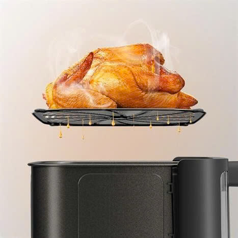 - Phụ kiện đi kèm: Vỉ tách dầu làm từ thép phủ chống dính, giúp loại bỏ lượng dầu thừa, cho món ăn lành mạnh hơn.