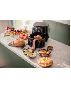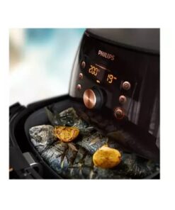 Giảm lượng chất béo đến 90%, thực phẩm chín đều mà không cần trở mặt với công suất 2200W, quạt đối lưu và công nghệ Rapid Air. Nhờ quạt đối lưu cùng công nghệ Rapid Air hiện đại, luồng khí trong nồi di chuyển nhanh gấp 7 lần thông thường và luân chuyển đều khắp nồi, giúp thực phẩm chín đều mà không cần trở trong suốt quá trình nấu. Thời gian nấu nướng nhờ thế cũng sẽ được tiết kiệm đáng kể. Với các thực phẩm khoảng 1.4 kg trở xuống, nồi sẽ nấu nhanh hơn 1.5 lần so với lò nướng thông thường, nhờ luồng khí di chuyển nhanh hơn trong không gian nhỏ hơn so với lò nướng. Đặc biệt, thực phẩm chế biến từ nồi chiên không dầu có lượng chất béo giảm đến 90%, đảm bảo sức khỏe cho bạn và cả gia đình.