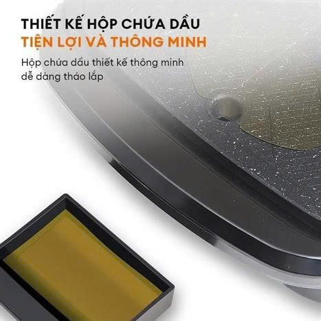 - Thiết kế hộp chứa dầu thông minh có thể tháo lắp dễ dàng, giúp hứng trọn lượng dầu mỡ thừa từ món nướng, giữ cho mặt bàn ăn luôn sạch sẽ.