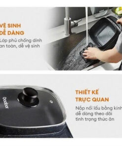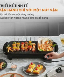 Sản phẩm nồi lẩu điện đa năng tích hợp hai chức năng chính là lẩu và nướng, cho phép bạn chế biến nhiều món ngon chỉ với một thiết bị. Bạn có thể vừa nhúng lẩu nóng hổi, vừa nướng thịt thơm lừng ngay trên cùng một mặt bếp, tạo nên sự đa dạng cho mọi bữa tiệc. Dung tích 1.7 lít của nồi lẩu lý tưởng cho các gia đình nhỏ hoặc nhóm bạn từ 2 – 3 người.
