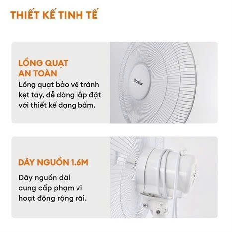 - Dễ dàng vệ sinh: Lồng quạt được thiết kế dạng bấm thông minh, giúp bạn dễ dàng tháo lắp để vệ sinh cánh quạt và lồng quạt, đảm bảo luồng gió luôn sạch sẽ, trong lành. Thiết kế này cũng hạn chế tình trạng kẹt tay, an toàn hơn cho người sử dụng.