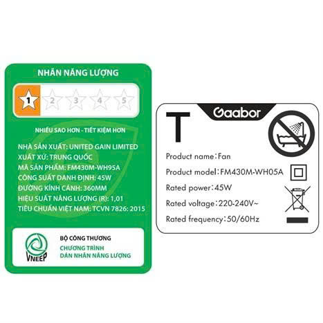 Sử dụng loại quạt điện với motor AC, Gaabor FM430M-WH05A 45W đảm bảo hoạt động bền bỉ, ổn định và có tuổi thọ cao. Công suất 45W giúp quạt vận hành hiệu quả, tạo ra luồng gió mạnh mẽ mà vẫn tiết kiệm điện năng nhờ hiệu suất năng lượng (R) đạt 1.01.